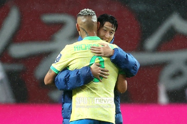 这场比赛,孙兴慜首发出场63分钟,而里沙利松则在第79分钟替补出场,赛后两位老队友在球场内相互拥抱并交谈,两人还在场内打闹。