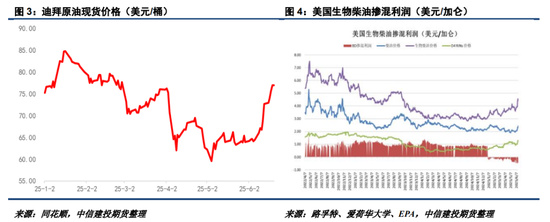 伊以冲突的持续进行,导致国际原油预期得到修正,并实现快速上行。对于宏观题材部分,我们较难进行前瞻性研判,交易上以边走边看思路为主。总的来说原油的估值修复有利于美国生物柴油掺混利润的好转,至少对植物油一侧而言难言利空。但从交易角度来说,如果地缘冲突不能给出进一步的利多驱动,07及09菜油的上行压力也将逐步凸显。近期俄罗斯菜油及迪拜菜油的进口成本约在9560-9600元/吨左右,如果盘面进一步上行,套保进口积极性或边际递增。
